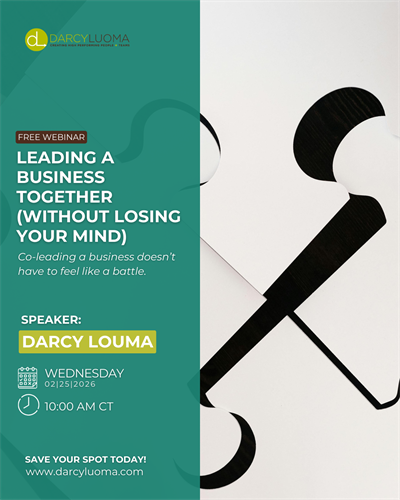 Join Darcy Luoma, master-certified coach and leadership expert, for a practical, real-talk webinar on how to lead together without losing your mind, or your relationship.